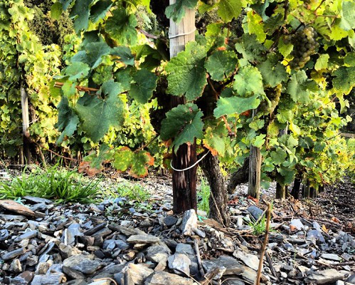 德國摩澤爾產區以優質的雷司令(Riesling)葡萄酒聞名于世,其最好的葡萄園大多位于坡度較大的摩澤爾河(River Mosel)兩岸,且園內土壤以板巖為主。板巖是在熱力和壓力共同作用下形成的,顏色較為深邃,雖然易碎,但相比其他類型的土壤,其受風化影響較小,可以很好地吸收、儲存和反射熱量,幫助葡萄成熟。摩澤爾產區的板巖土壤主要有藍板巖和紅板巖,紅板巖區域多黏土,生產的雷司令葡萄酒口感較為豐富,而藍板巖區域的酒則帶有更多的花香。