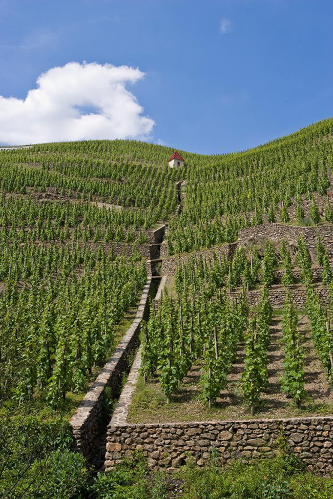 羅第丘地勢陡峭,有些山坡的坡度可達60度。為了蓄水保土,人們建造了被當地人稱為“cheys”的石墻,它們經年累月地佇立在羅第丘,見證了歲月變遷和人事變換,有些石墻的建造甚至可追溯至羅馬時期。經過人類兩千多年的“雕刻”,這些石墻使羅第丘形成了狀似梯田的壯麗景觀。