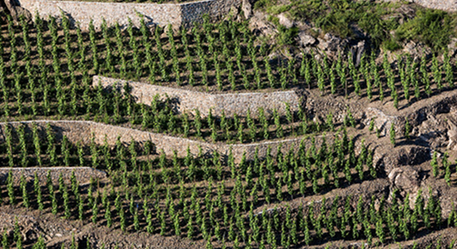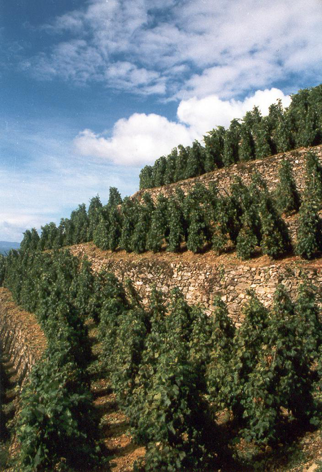 羅第丘的極端地勢孕育出了令人驚嘆的美麗景色,這對常人而言是眼前的一大享受,但對釀酒師來說,卻是十分棘手的挑戰。修剪葡萄樹、維護階地、修柵欄、手工采收葡萄……在此般地勢上,種種葡萄園管理措施都需要人們付出額外的汗水。