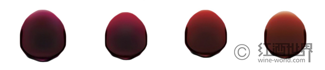 葡萄酒陳年時(shí)或多或少都會(huì)經(jīng)歷一個(gè)緩慢氧化的過(guò)程,葡萄酒顏色變化便是這一化學(xué)反應(yīng)最直接的表現(xiàn)。對(duì)于紅葡萄酒來(lái)說(shuō),其顏色主要來(lái)源于果皮上的色素。隨著時(shí)間推移,這些色素在氧氣的作用下,與單寧聚合,形成聚合鏈,從而減少了零散分布在酒液中的色素,紅葡萄酒的顏色也就隨之變淺,若陳年時(shí)間足夠長(zhǎng),甚至?xí)葑兂勺厣虿枭?/span>
