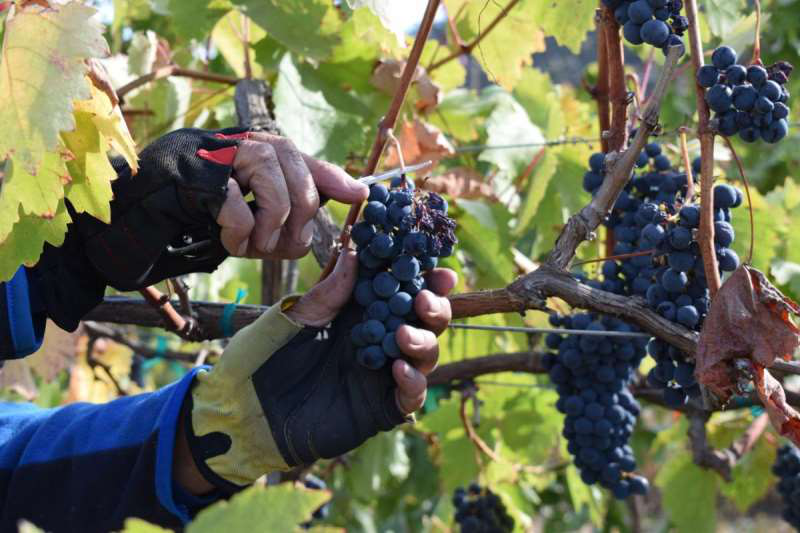 大部分酒莊會選擇先采摘白葡萄品種再采摘紅葡萄品種。為了把握好最佳的采收時機,很多酒莊會在葡萄進入轉色期后就對其成熟度進行密切的監測。采收的方式分為人工和機器采收2種。手工采收由葡萄農用園藝剪刀將葡萄一串串地剪下來,這種采收方式較為緩慢,而且所需的勞動力較多,但可以對所采收的葡萄進行挑選,對葡萄果實的損壞也較少。