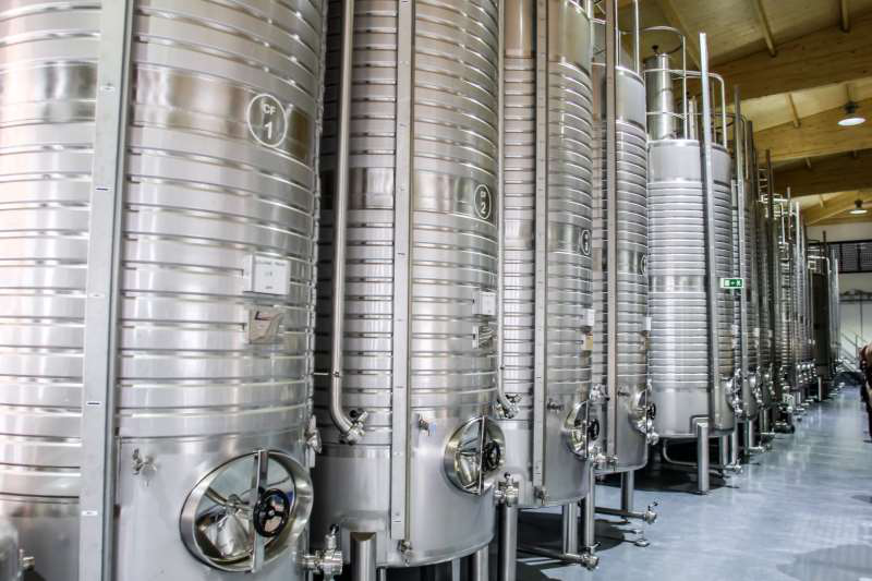 紅葡萄酒的發酵溫度較高,一般為20-32℃,較高的溫度有利于提取顏色和單寧。由于果皮和葡萄汁一起發酵,紅葡萄酒的發酵一般不會在橡木桶中進行,而是更多地在不銹鋼罐等惰性容器中進行。在發酵過程中,釀酒師會選擇使用淋皮(Pump Over)、倒罐并回混(Rack and Return)、旋轉式發酵機(Rotary Fermenter)等方式幫助葡萄汁與果皮進行更多的接觸,促進顏色、單寧和風味物質的提取。