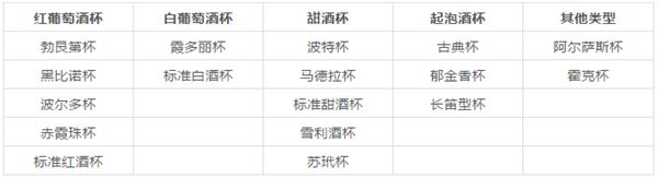 普通的葡萄酒愛好者自然沒有必要一一購(gòu)買上述所有酒杯。對(duì)于剛剛開始學(xué)習(xí)品酒,只是想要輕松享受品酒樂趣的童鞋來說,一組簡(jiǎn)單的酒杯組合就已經(jīng)能夠滿足需求,包括: