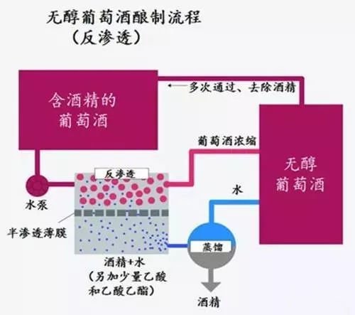 但同時又保留了酒的香氣,通過不停轉動的不銹鋼滾筒分離酒精,收回的酒液每經(jīng)過一輪反滲透,酒精的濃度就降低一點,約經(jīng)過3-5次滲透就可以得到無醇葡萄酒。