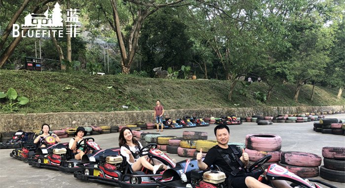 當(dāng)然啦,除了飛龍蹦極,這里還有很多極限活動(dòng)等著我們來(lái)打卡,寶晶宮跑跑卡丁車(chē)圓了我們的賽車(chē)夢(mèng),讓我們親身體驗(yàn)速度與激情,過(guò)一把賽車(chē)手的癮;天山滑道帶領(lǐng)我們?cè)谏峙c喀斯特地貌之中急速穿行,真實(shí)還原過(guò)山車(chē)叢林穿越,快速、刺激而又唯美;坐上天鵝湖滑索,飛越千畝湖面,仿佛乘風(fēng)前行,將山青水秀、碧波蕩漾的美景盡收眼底......在一輪又一輪驚險(xiǎn)刺激的游戲項(xiàng)目中,藍(lán)菲伙伴們的工作壓力都得到了盡情的釋放,在美景中返璞歸真,共同沉浸在這質(zhì)樸而浪漫的世外桃源。